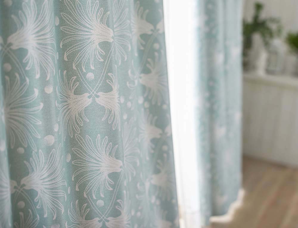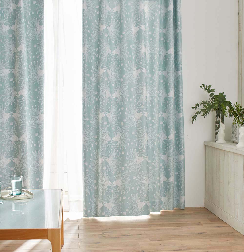 爽やかに彩る水色の遮光カーテンです。
