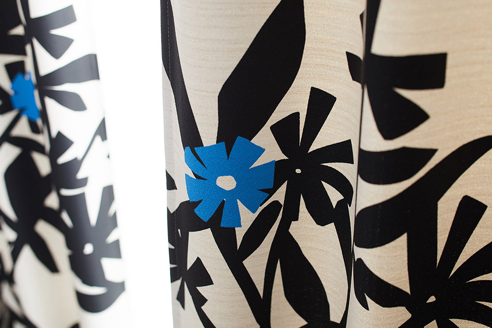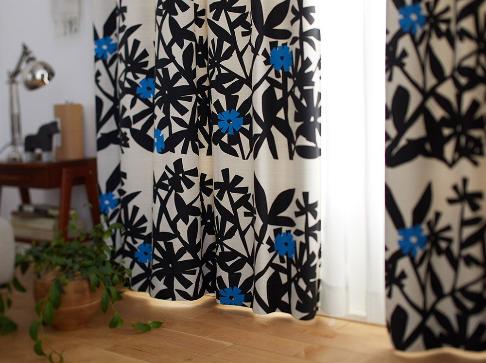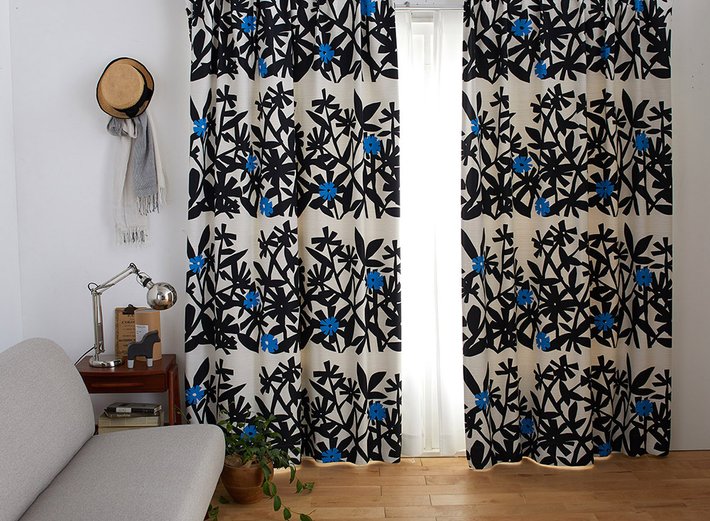 はっきりとした色と切り絵に形がマッチした北欧デザインのカーテンです。