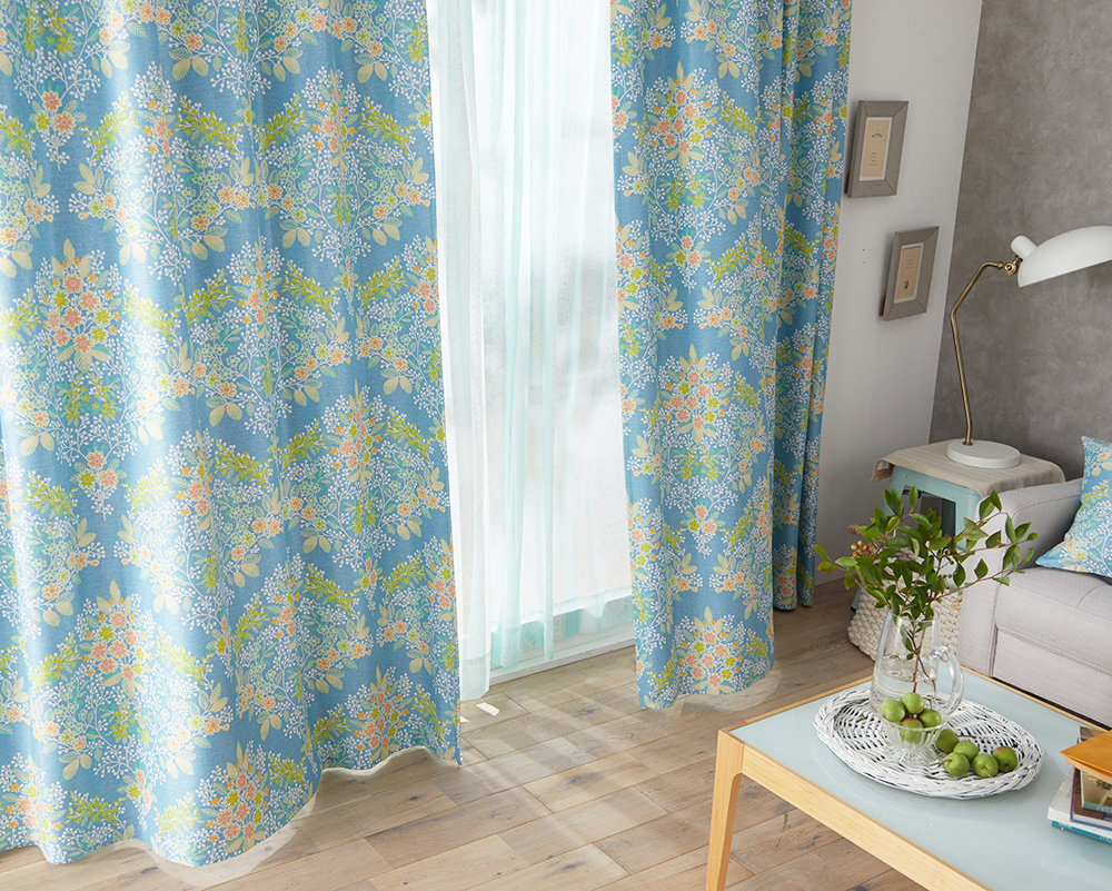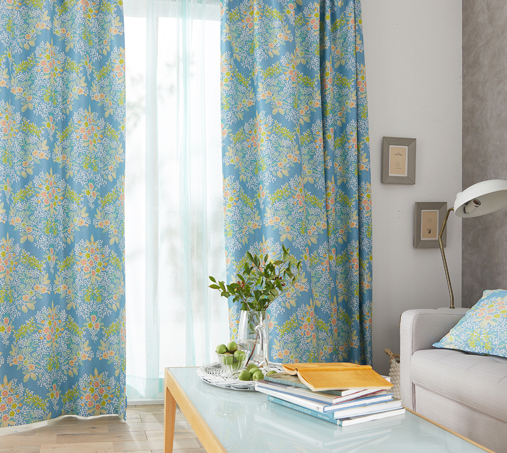 綺麗な色のカーテンを吊るすと、気持ちもアップして毎日が楽しくなりますね。