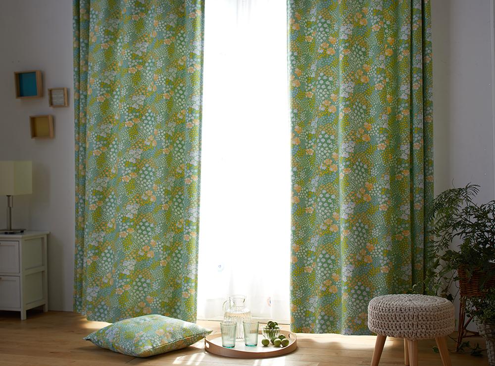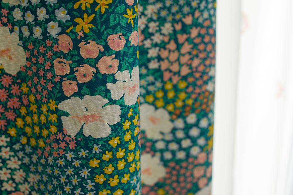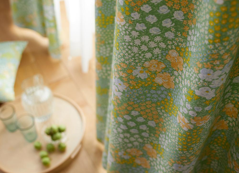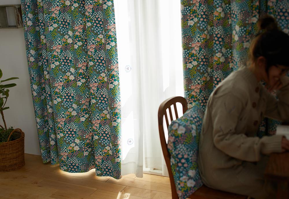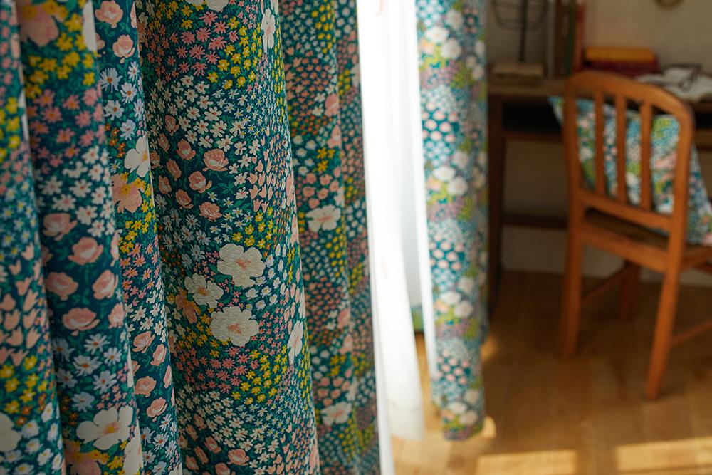 お花畑カーテンからお部屋に気持ちの良い風が通りぬけていきそうです。