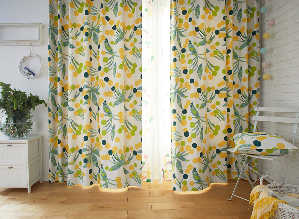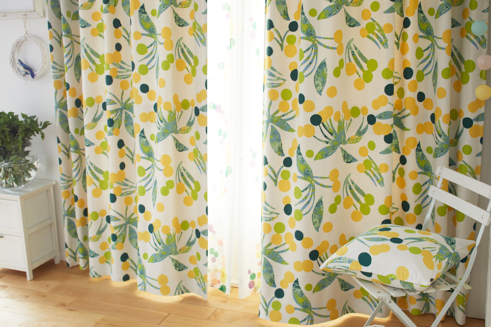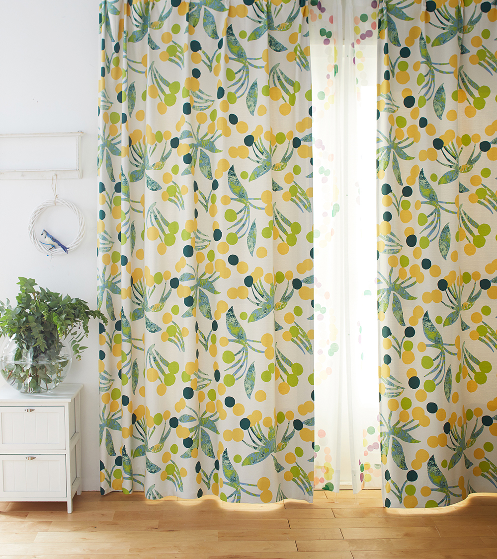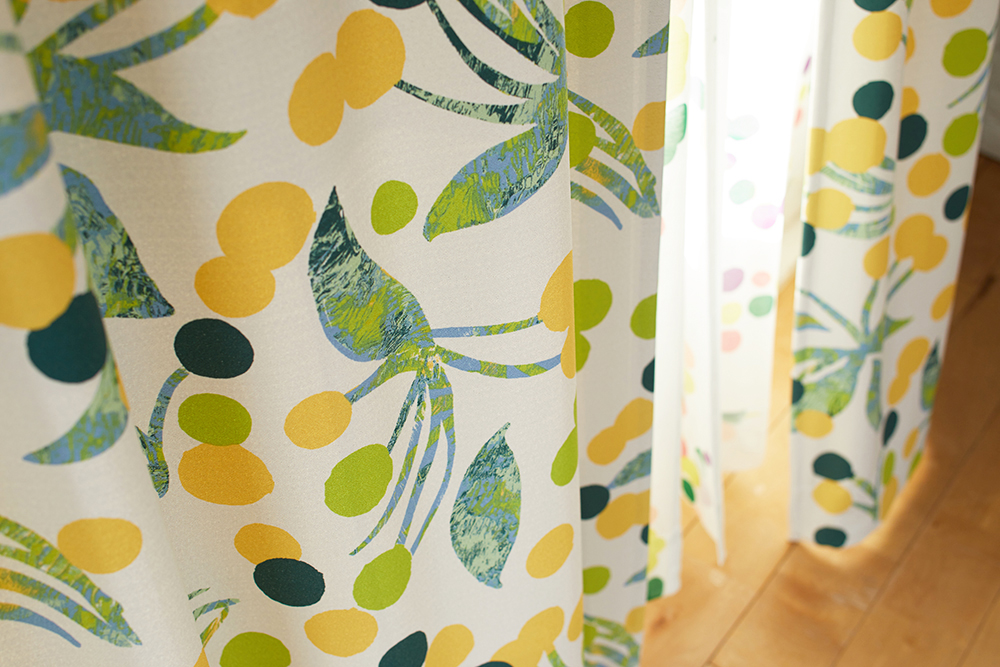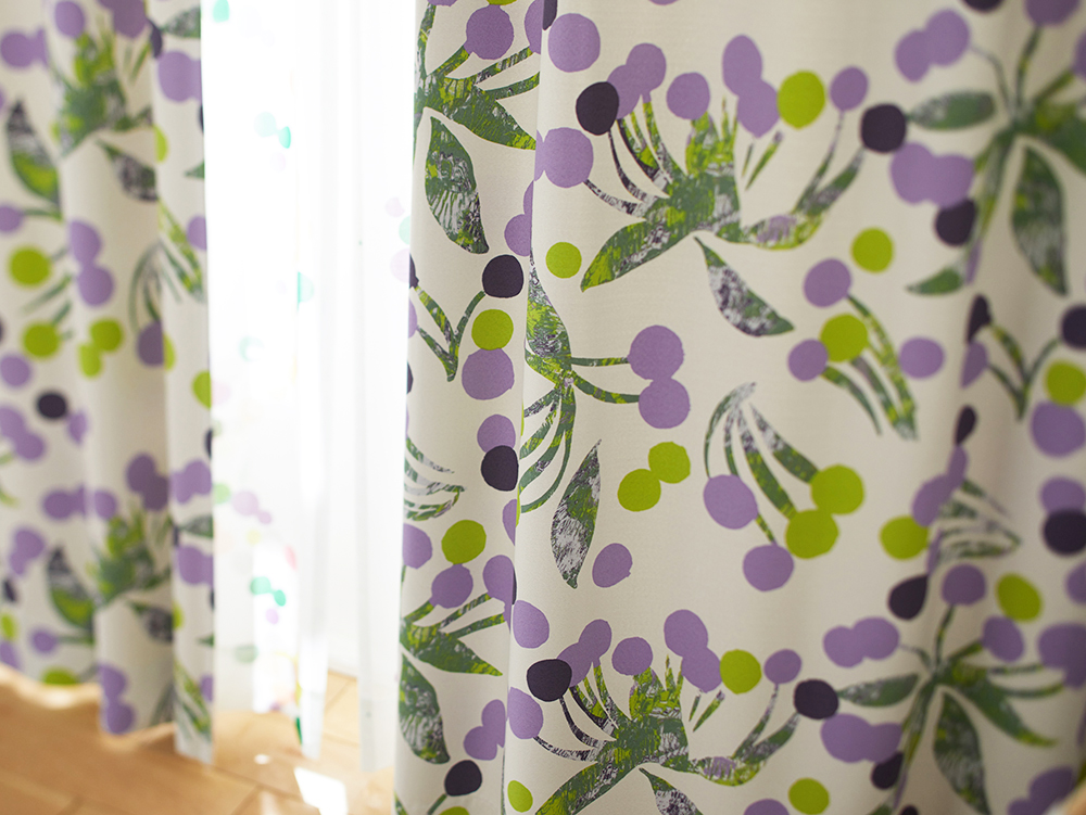 大きな円を描く大胆な花モチーフ柄です。ペア柄のシアーとコーディネートしてみてください。
