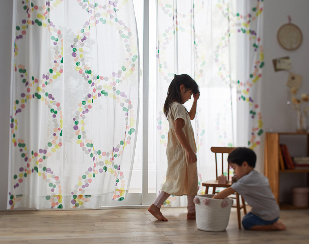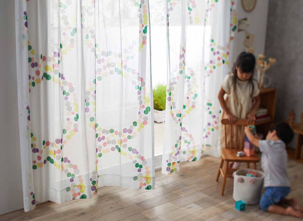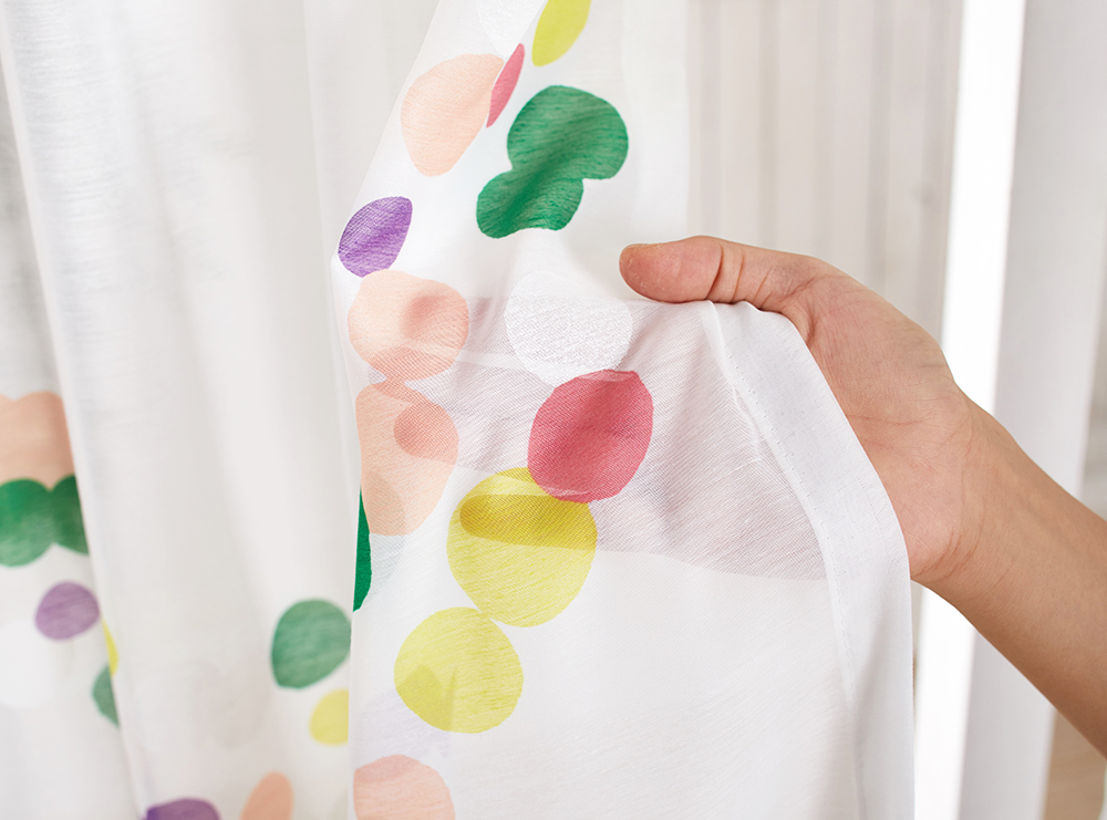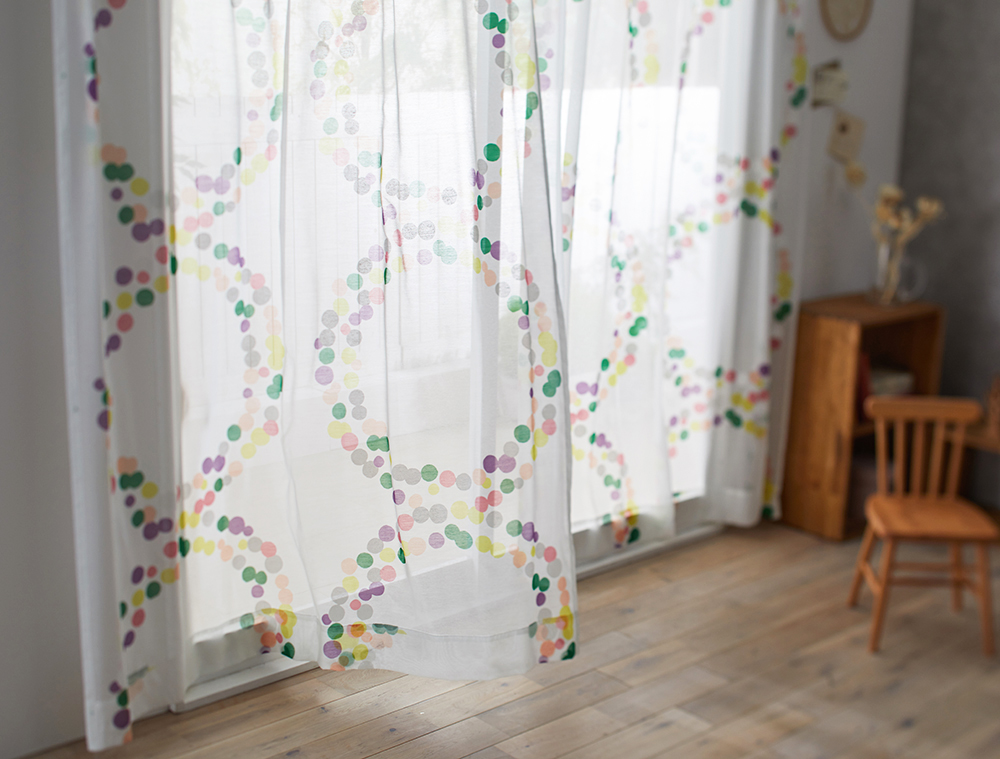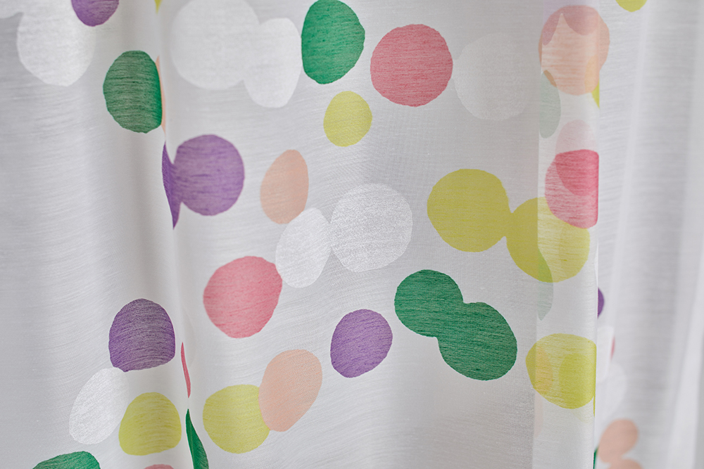 ミックスカラーが可愛い北欧テイストのサークルパターンのシアーです。