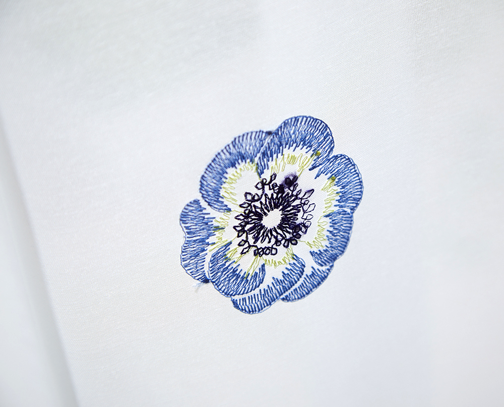 刺繍で表現されたお花がタテに配置されたシンプルなデザインですが、ポイントのお花が可愛く自然と笑顔になってきます。