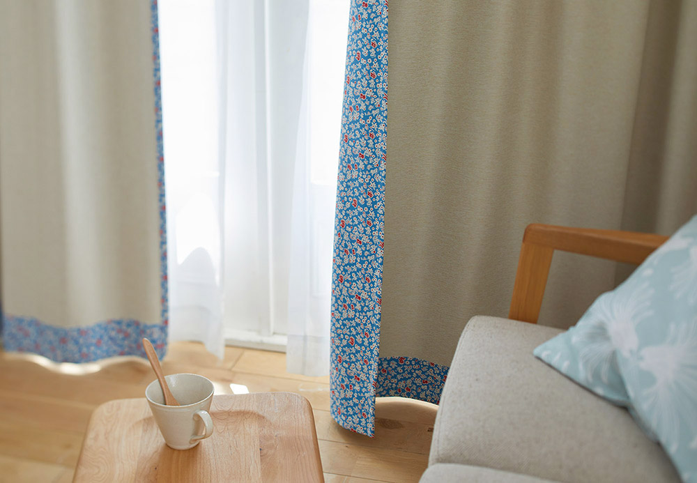 少し濃い目のベージュなので、透ける大柄のシアーを手前に吊っても綺麗です